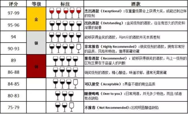 James Halliday的酒款評(píng)分具體評(píng)定標(biāo)準(zhǔn):
