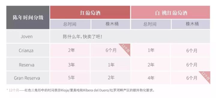 陳年時(shí)間的分級(jí)體系主要存在于里奧哈、杜埃羅河岸和納瓦拉等法定產(chǎn)區(qū),且適用于DO或DOCa葡萄酒,從低到高依次為:
