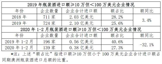 而因?yàn)榭箾_擊能力弱,當(dāng)遭遇疫情沖擊導(dǎo)致市場低迷的情況,部分小微企業(yè)或?qū)⒕痛送顺鑫枧_(tái)。以今年1-2月為例,進(jìn)口澳洲瓶裝酒企業(yè)較同期減少的企業(yè)數(shù)量(130家)中絕大多數(shù)為小微企業(yè),但同時(shí)也有不少甚至更多的小微企業(yè)聞風(fēng)而來“補(bǔ)位”。