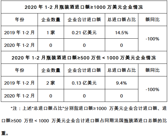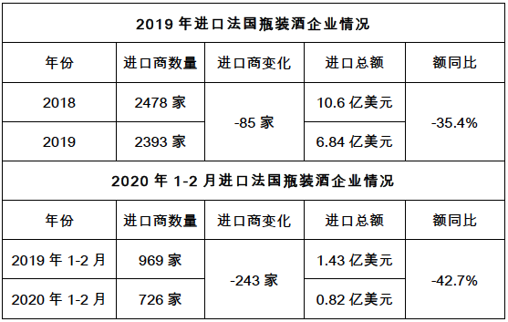 今年1-2月,市場低迷與疫情影響的雙重沖擊下,更是出現(xiàn)了無企業(yè)進(jìn)口法國瓶裝酒超過500萬美元的慘淡開局。